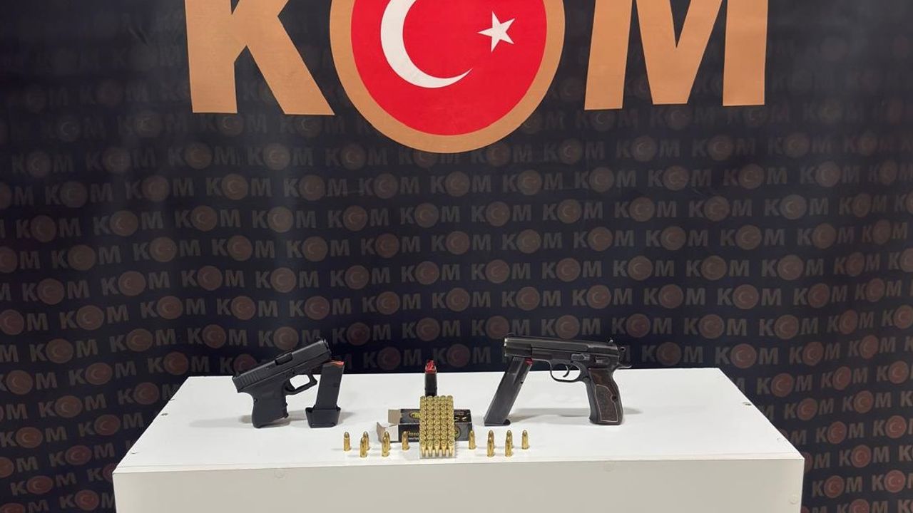 Afşin ilçesinde belirlenen adreste yapılan aramada, ruhsatsız 2 tabanca ile 1 yivsiz tüfek, 2 şarjör ve 105 fişek ele geçirildi.