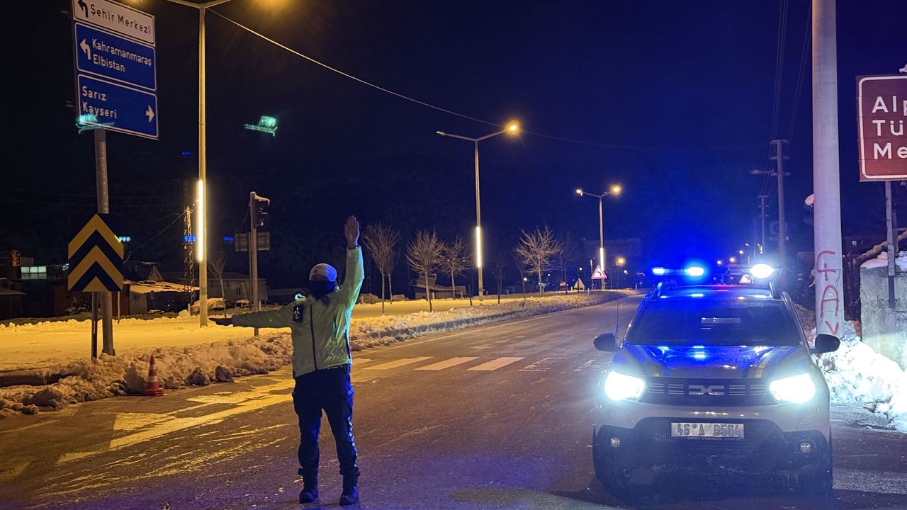 Kayseri-Göksun kara yolunda kar yağışı nedeniyle ağır tonajlı araçların geçişine izin verilmedi.