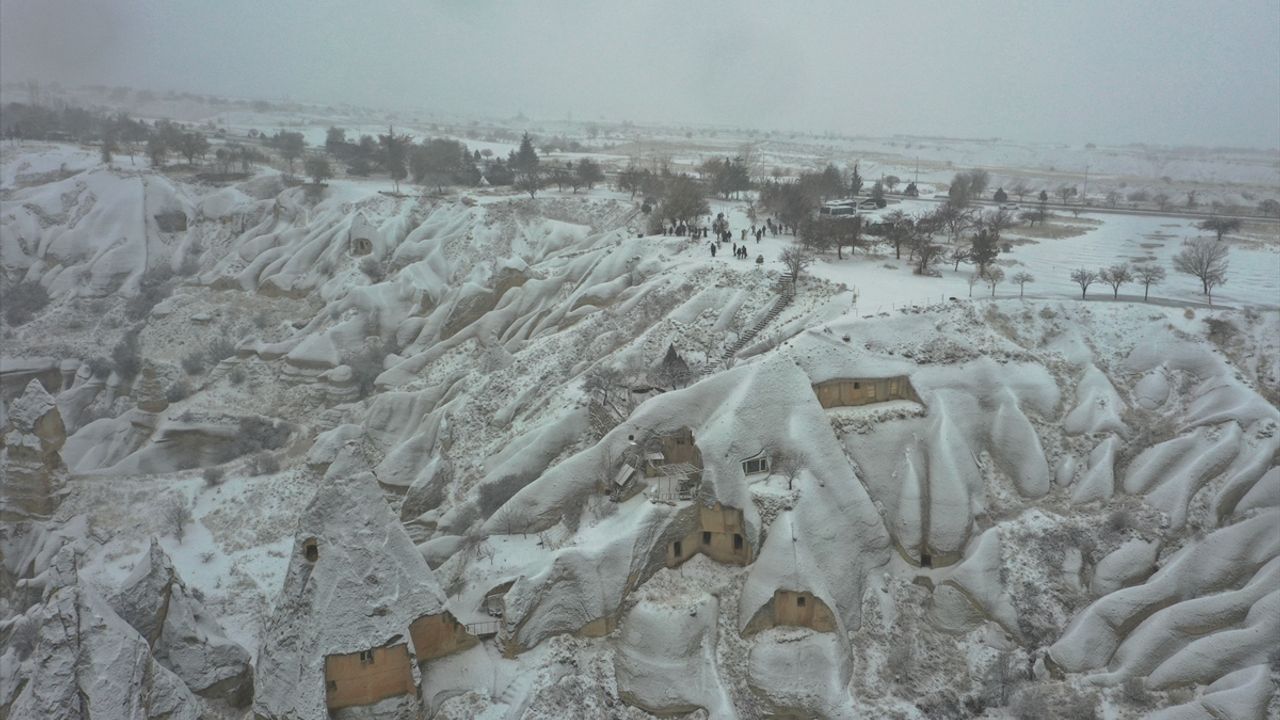 Peribacaları ve doğal kaya oluşumlarıyla her yıl milyonlarca turiste ev sahipliği yapan Kapadokya ve çevresinde, gece saatlerinden itibaren kar yağışı etkili oldu.