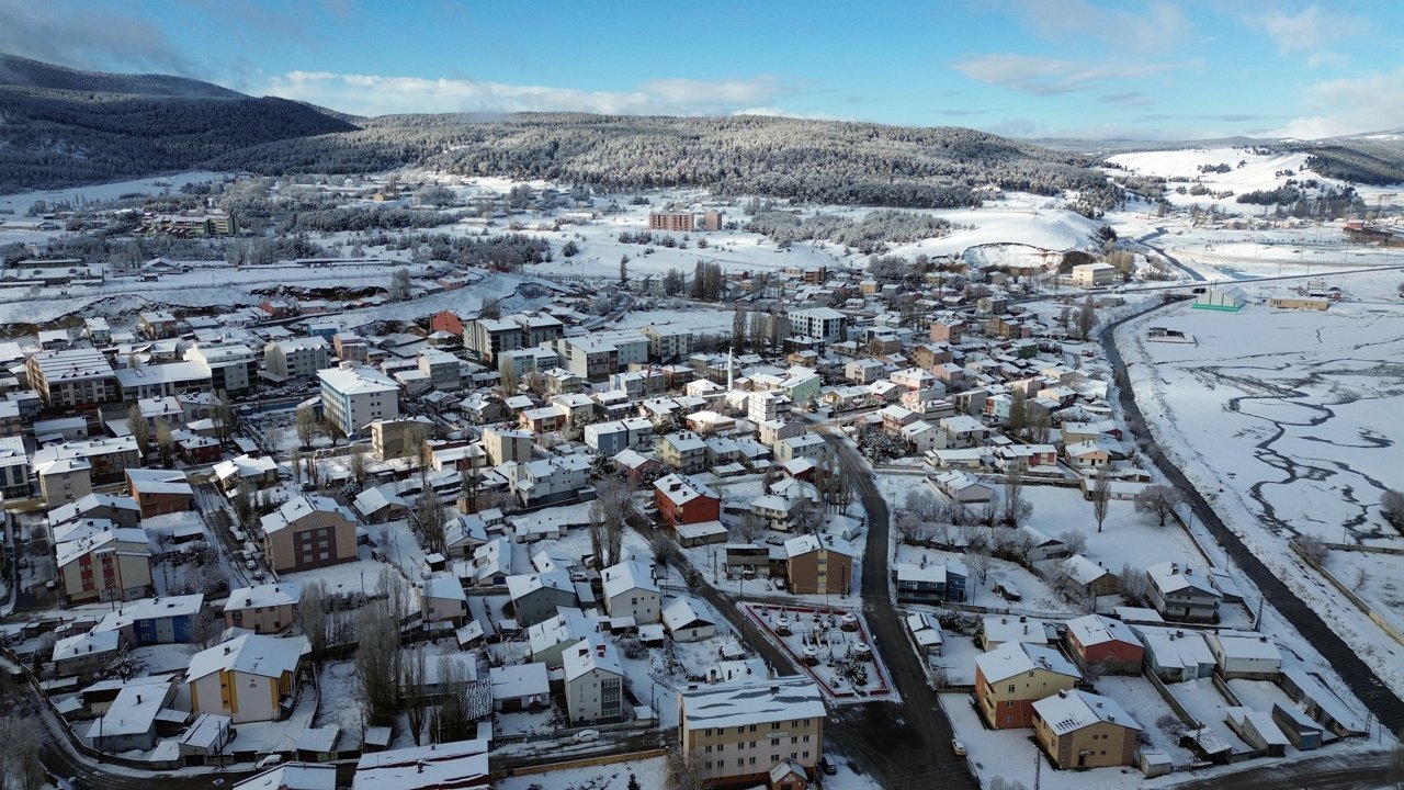 Sarıkamış ilçesinde de kar yağışıyla sarıçam ormanları, bitkiler ve araçlar yeniden karla kaplandı. Çayırlarda açan çiçeklerin kar altında kaldığı ilçede beyaza bürünen doğa dronla görüntülendi.
