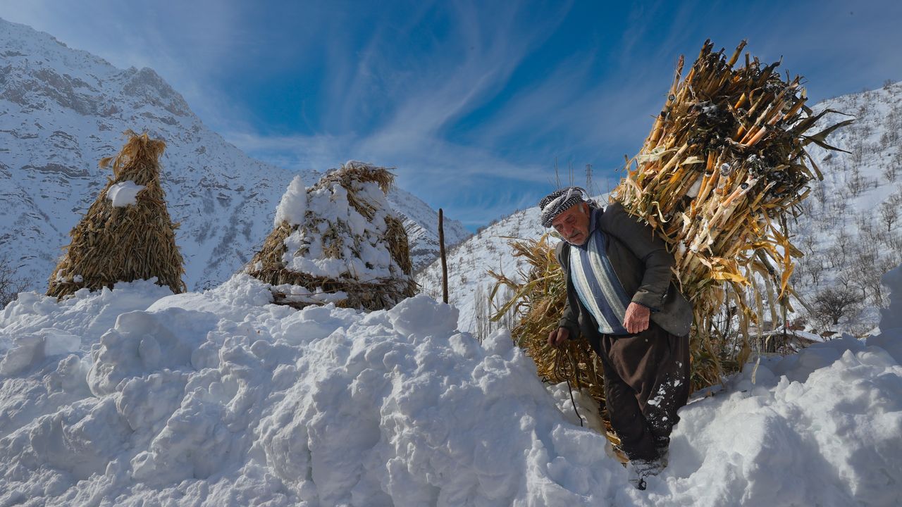 Binbir güçlükle ahırlara ulaşabilen hayvan sahipleri, yazın biçerek ahırlarına yakın bölgelere istifledikleri otları kar altından çıkarıp bazen sırtlarında, bazen de naylon ve kızakların üzerinde taşıyarak küçükbaş hayvanlarını besliyor.