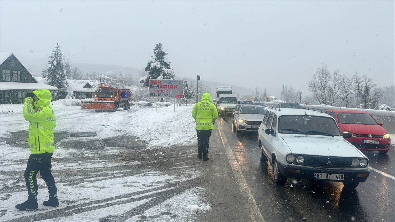 İstanbul ile Ankara arasında ulaşımı sağlayan önemli geçiş güzergahlarından Bolu Dağı'nda kar yağışı etkisini sürdürüyor.