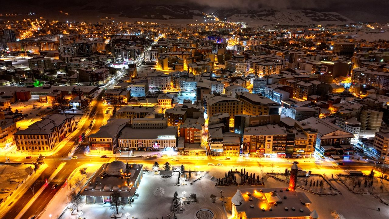 Karın etkisiyle farklı güzelliğe kavuşan tarihi mekanlar ve kent merkezi, dronla havadan görüntülendi.