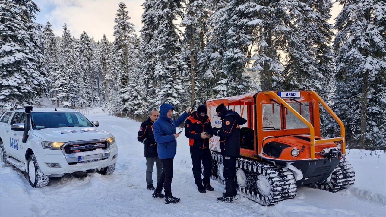 Araçlarını karda ilerletemeyen kişilerin, 112 Acil Çağrı Merkezi'ne ihbarda bulunması üzerine bölgeye AFAD ekipleri sevk edildi.