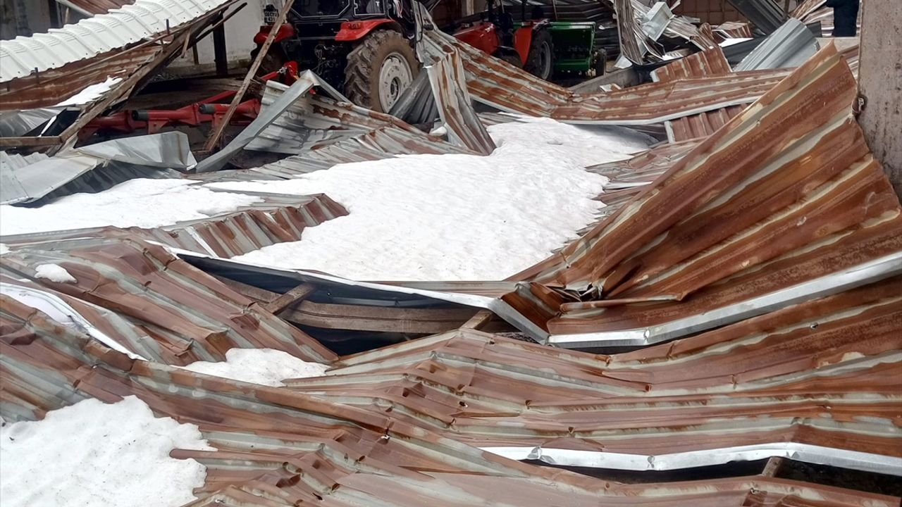 KARABÜK (AA) - Karabük'te etkili olan kar yağışı nedeniyle mandıranın çatısı çöktü, 2 traktör ve tarım ekipmanları zarar gördü.