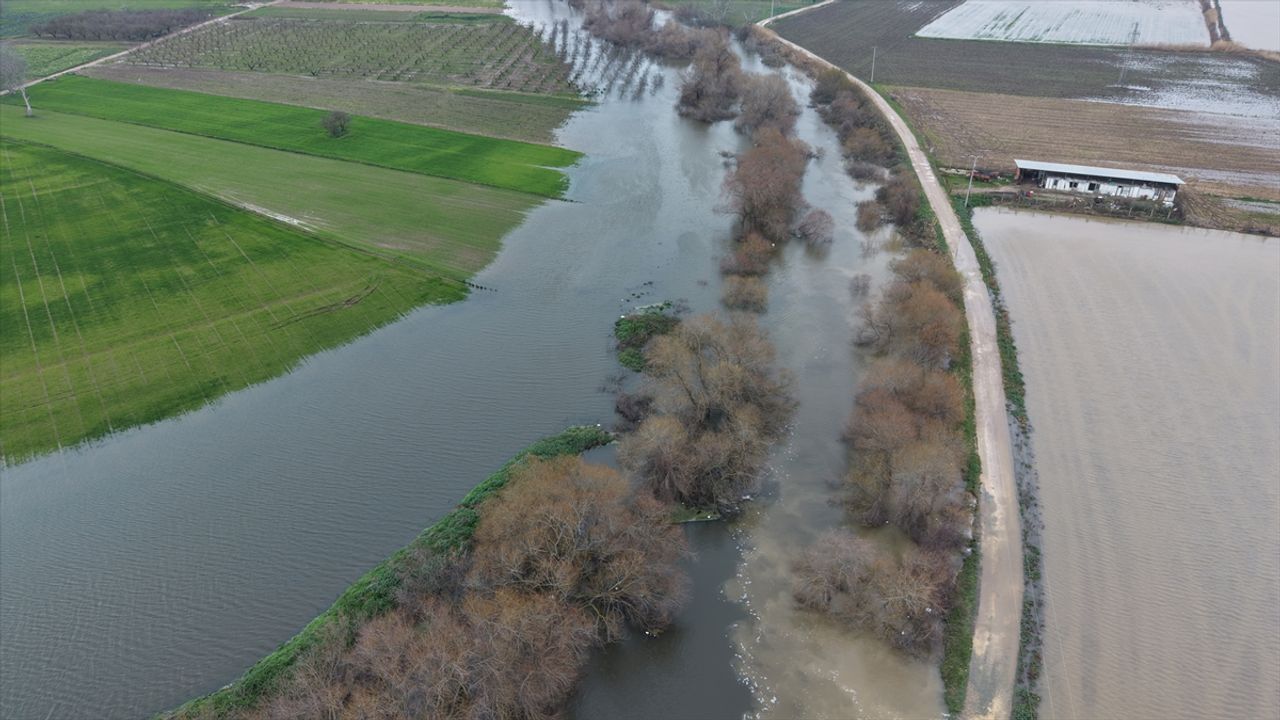 Karacabey Ovası'ndaki taşkın sahası, mera alanı, ekili ve dikili tarım arazilerini kapsayan yaklaşık 20 bin dekarlık alan su altında kaldı.