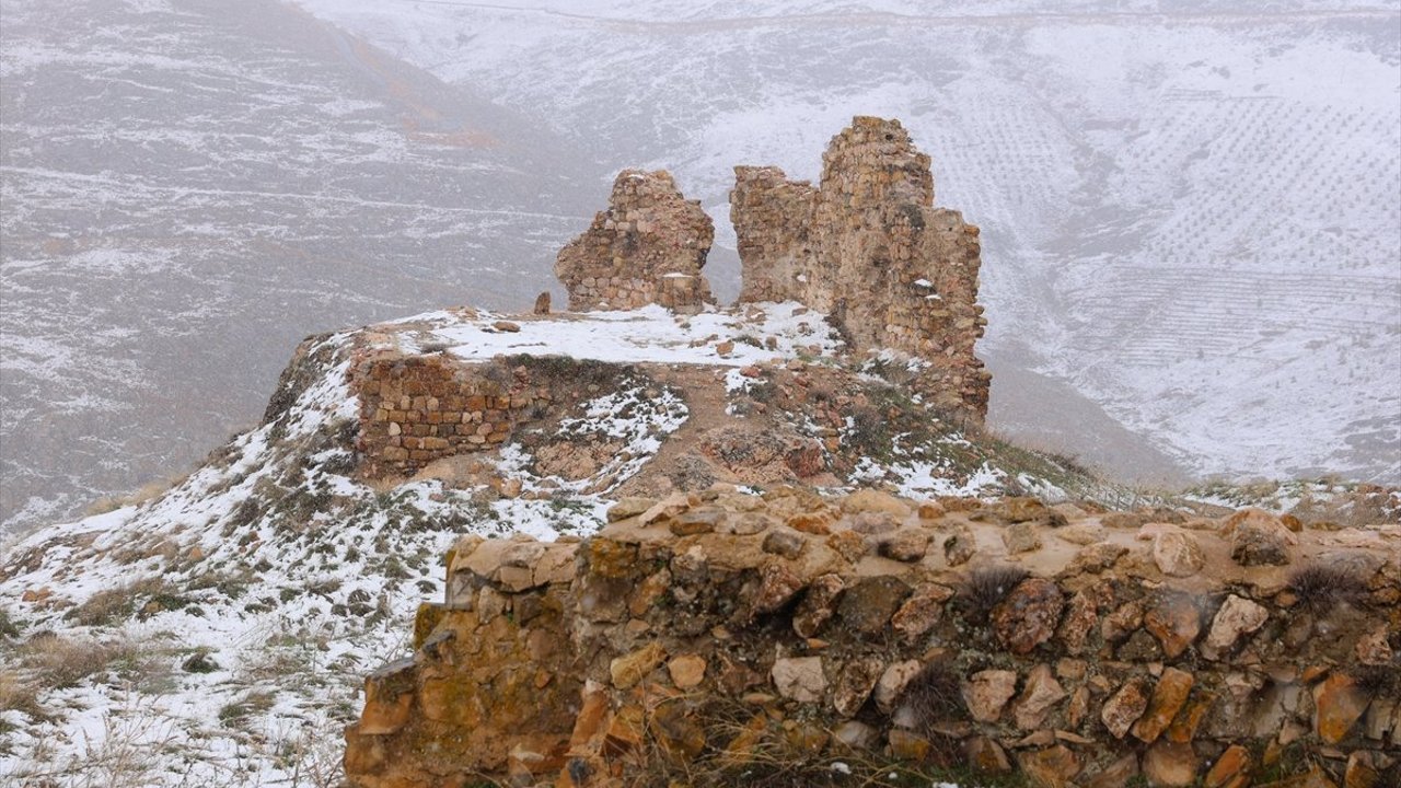 Sarp ve yalçın kayalıklar üzerindeki tarihi Bayburt Kalesi'nde de karın ardından seyrine doyumsuz güzel görüntüler oluştu.