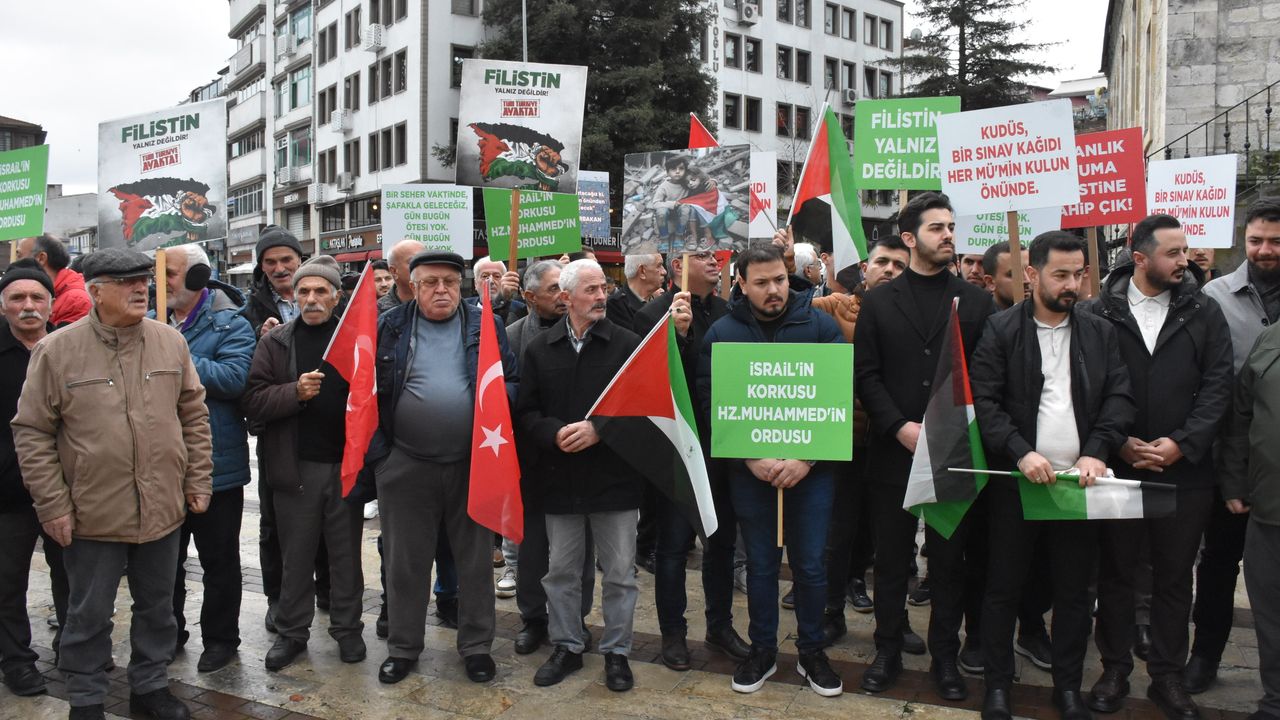 TÜGVA Trabzon İl Temsilciliği adına konuşan İsmail Hakkı Işık, İskenderpaşa Cami önünde yaptığı açıklamada, Gazze'de 2 yılı aşkın süredir devam eden insani yıkımın, uluslararası hukuk ihlallerinin ve sistematik hak gasplarının normalleştirilmesine karşı kamuoyunu bilgilendirme sorumluluğuyla bir araya geldiklerini söyledi.