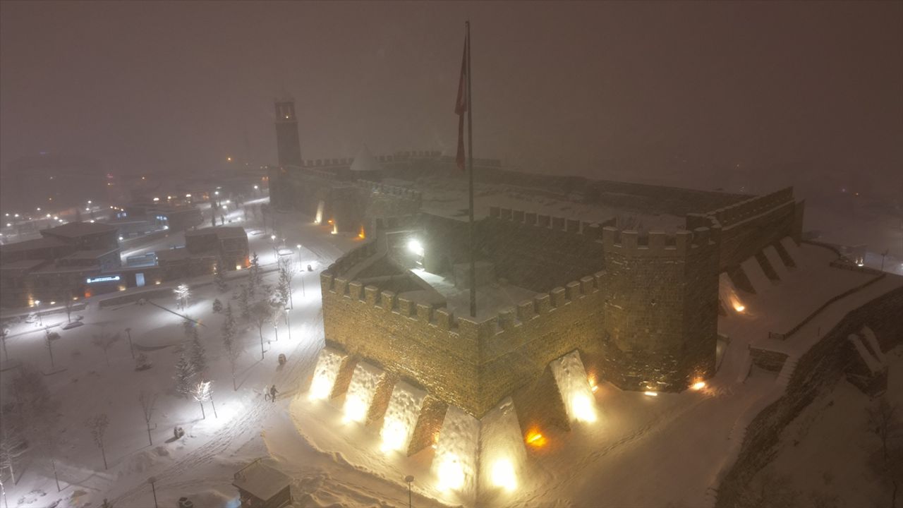 ERZURUM (AA) - Erzurum'da yoğun kar yağışıyla yeniden beyaza bürünen tarihi yapılar dronla görüntülendi.