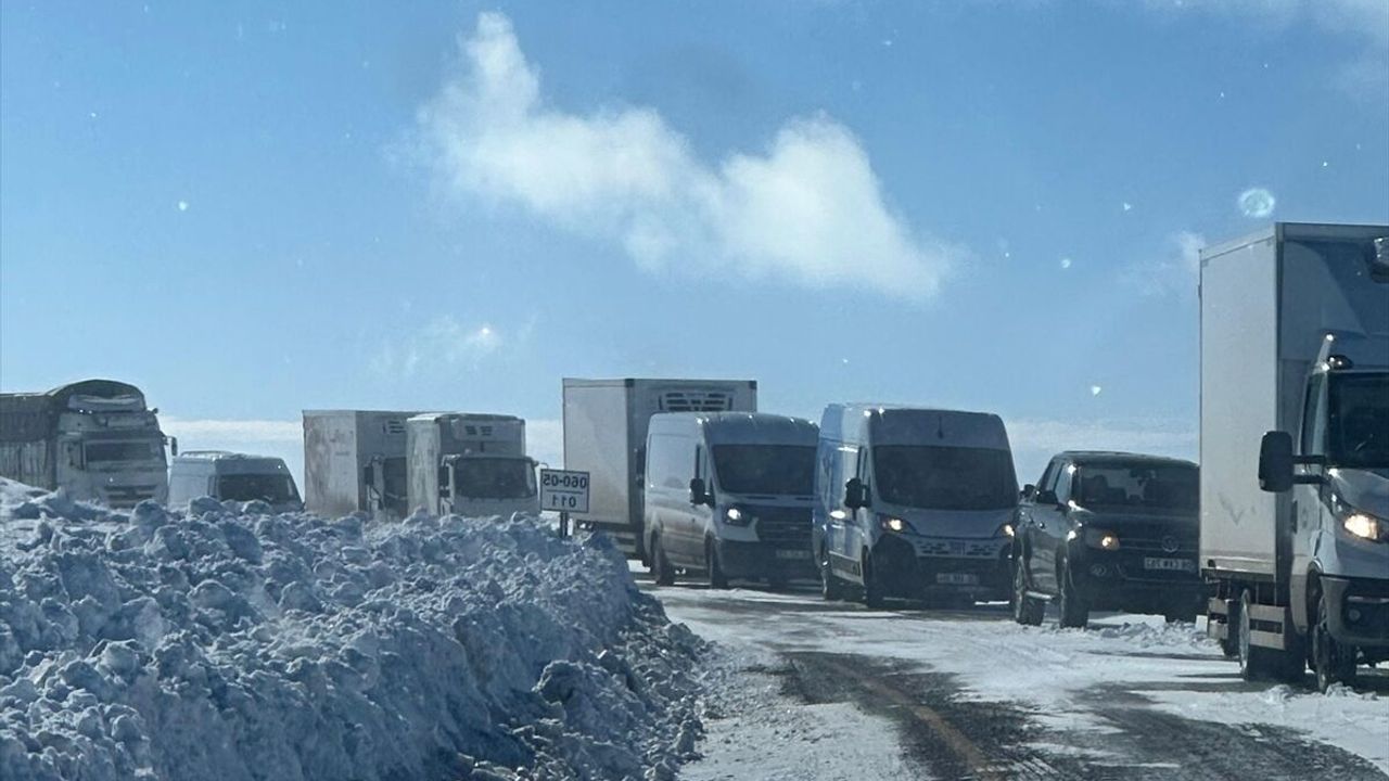 Tırların yolu kapatması sonucu ilerleyemeyen yaklaşık 40 araç mahsur kaldı.