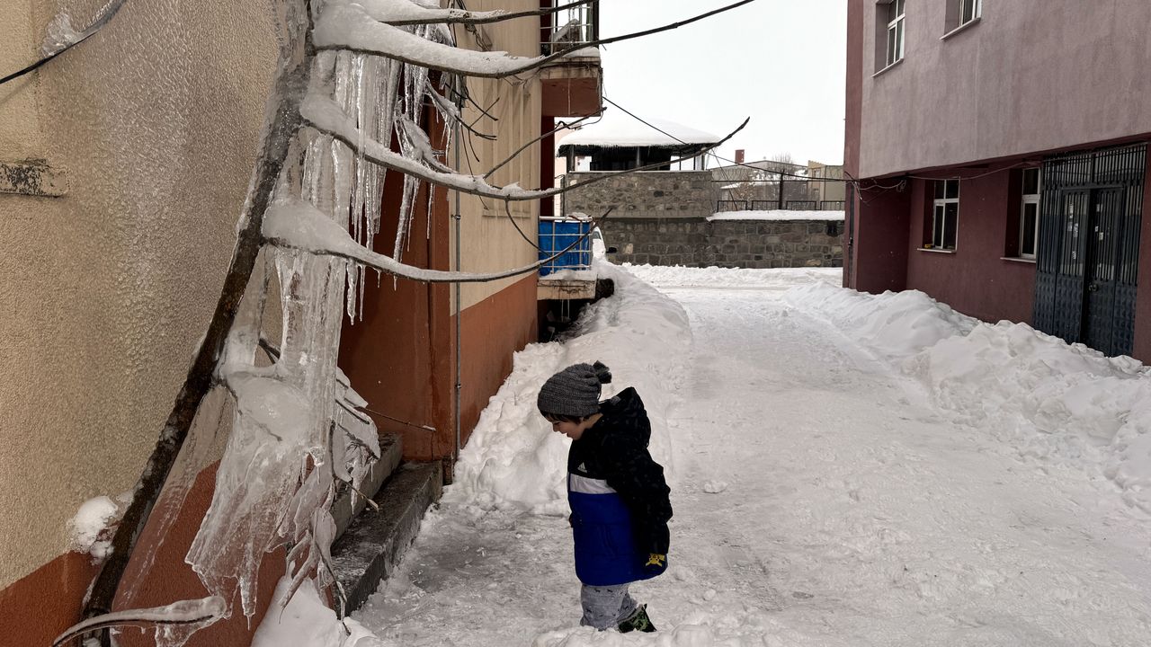 Sarıkamış ilçesinde kar yağışı yerini soğuk havaya bıraktı. Soğuk hava nedeniyle bina çatılarında uzun buz sarkıtları oluştu, araç camları buz tuttu.