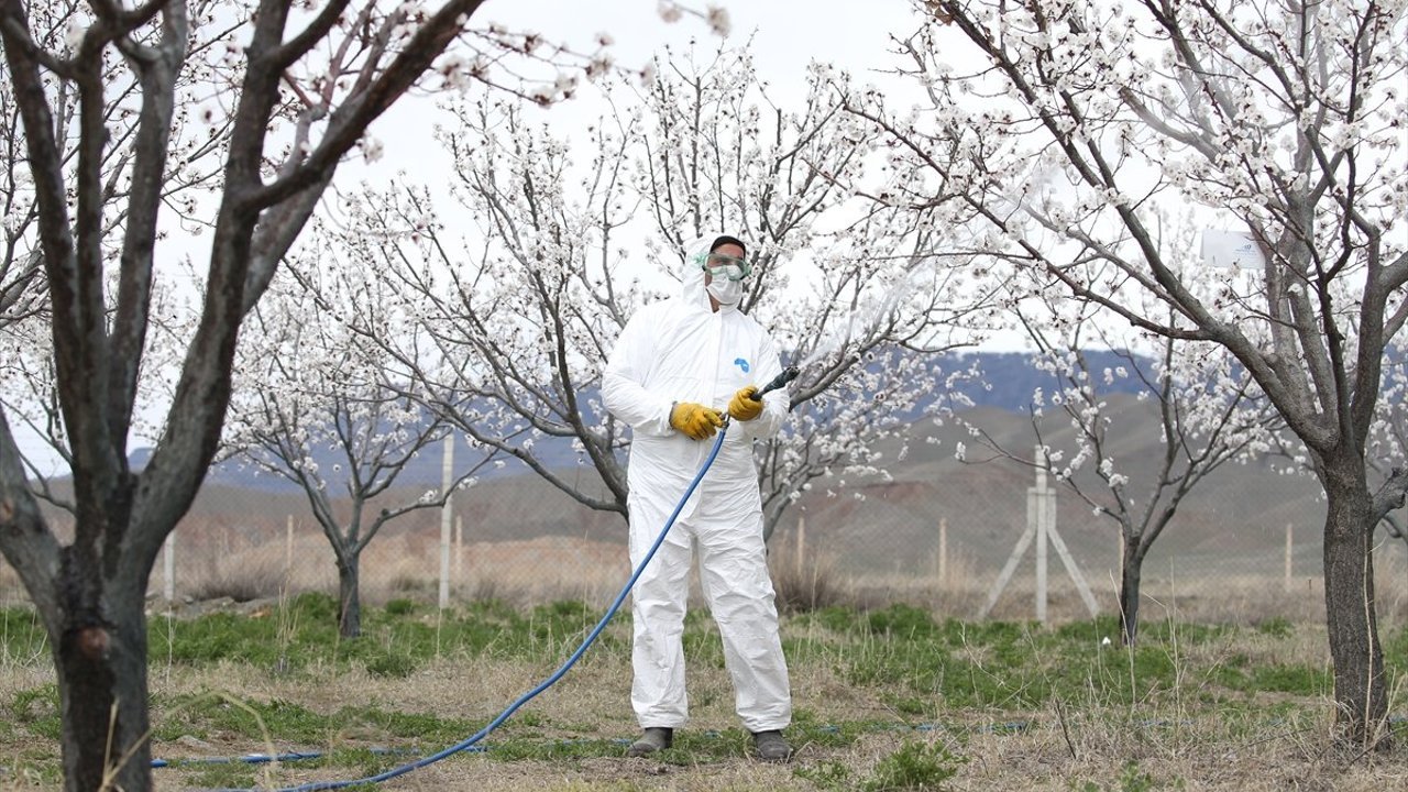 Bu yıl ilkbaharda düşen yağışlarla oluşan nemin, kayısı ağaçlarında her yıl görülen ve verimi düşüren bir tür mantar hastalığı olan 'monilya'yı artıracağından endişe duyan üreticiler, ilk çiçeklenme döneminden itibaren zirai ilaçlama yapıyor.