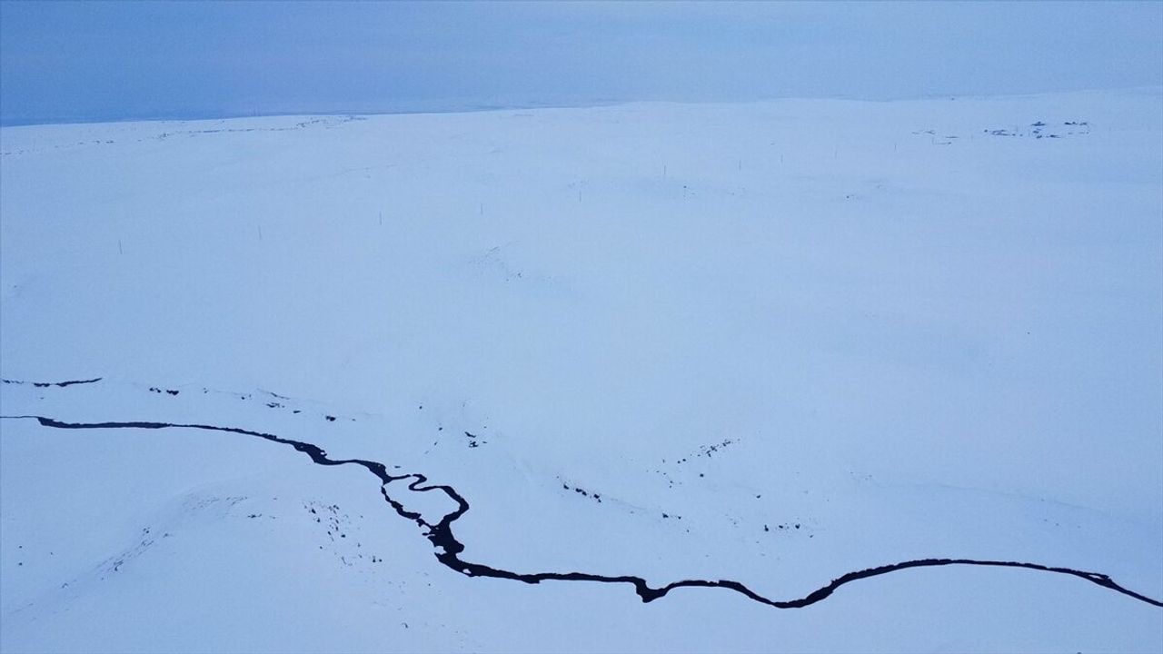 Bölgedeki karla kaplı arazi ve kıvrımlı menderesler, dron ile görüntülendi.