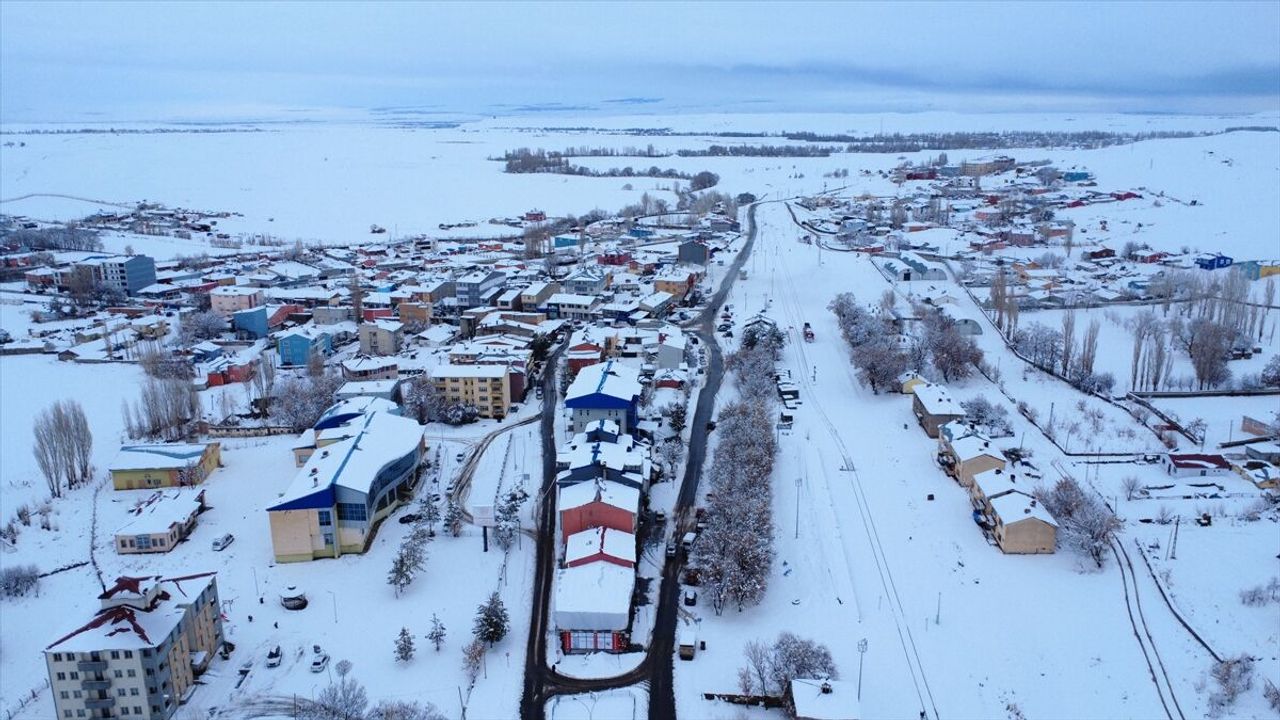 KARS (AA) - Türkiye-Ermenistan sınırında yer alan Kars'ın Akyaka ilçesi kar yağışıyla beyaza büründü.