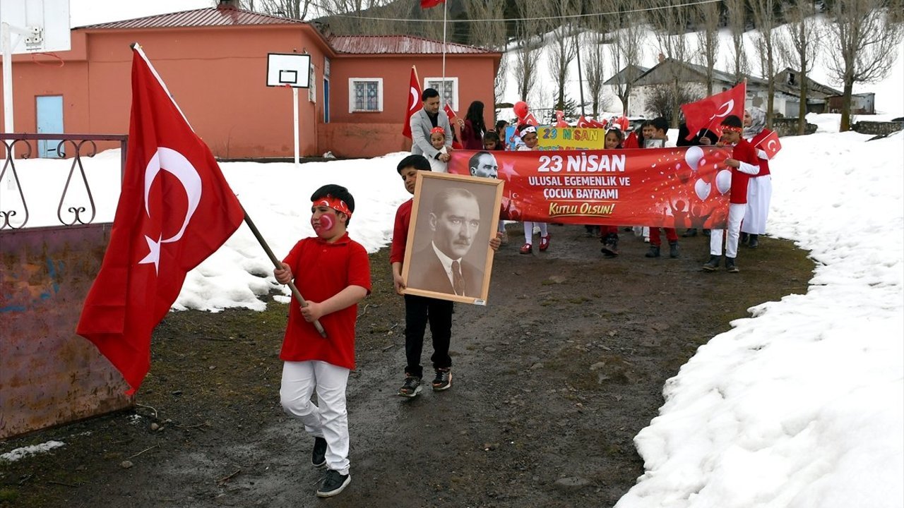 KARS (AA) - Kars'ın Sarıkamış ilçesi Hamamlı İlkokulu'nda öğrenim gören öğrenciler, 23 Nisan Ulusal Egemenlik ve Çocuk Bayramı'nı düzenledikleri sessiz yürüyüşle kutladı.