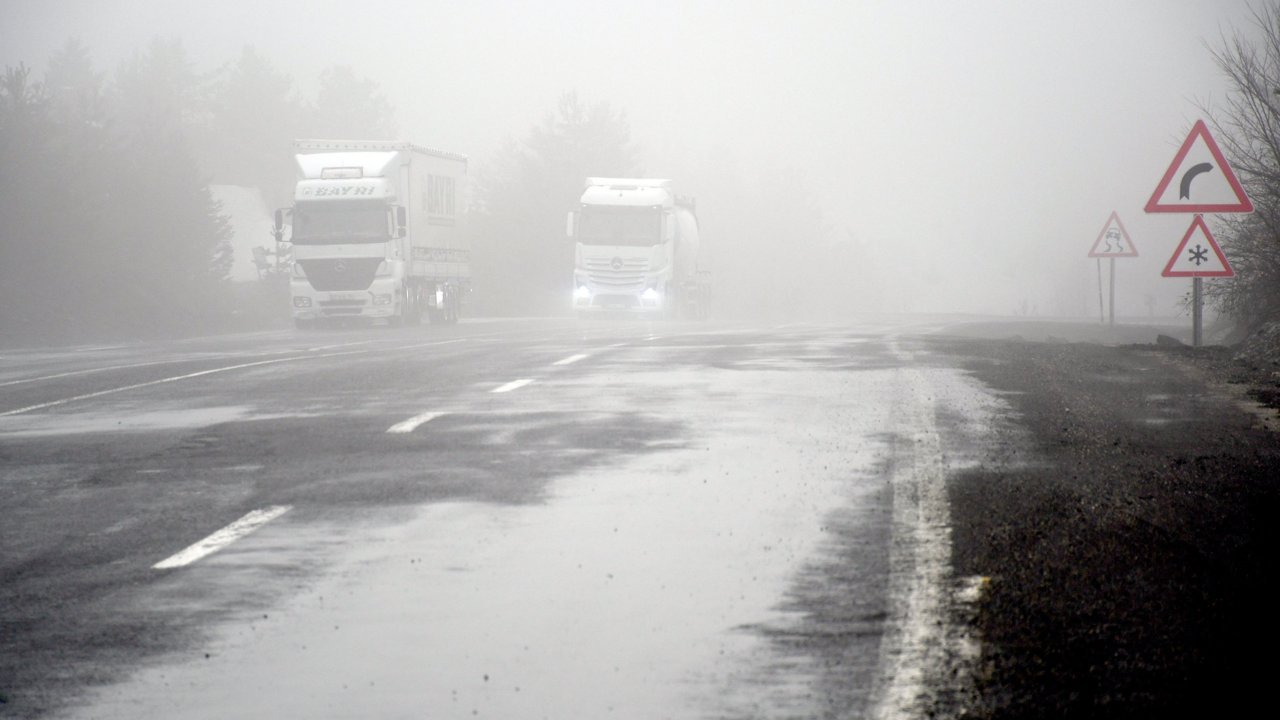 Sis nedeniyle Kars-Erzurum kara yolunun Mescitli mevkisinde görüş mesafesi 30 metreye düştü, araçlar kontrollü şekilde ilerledi.