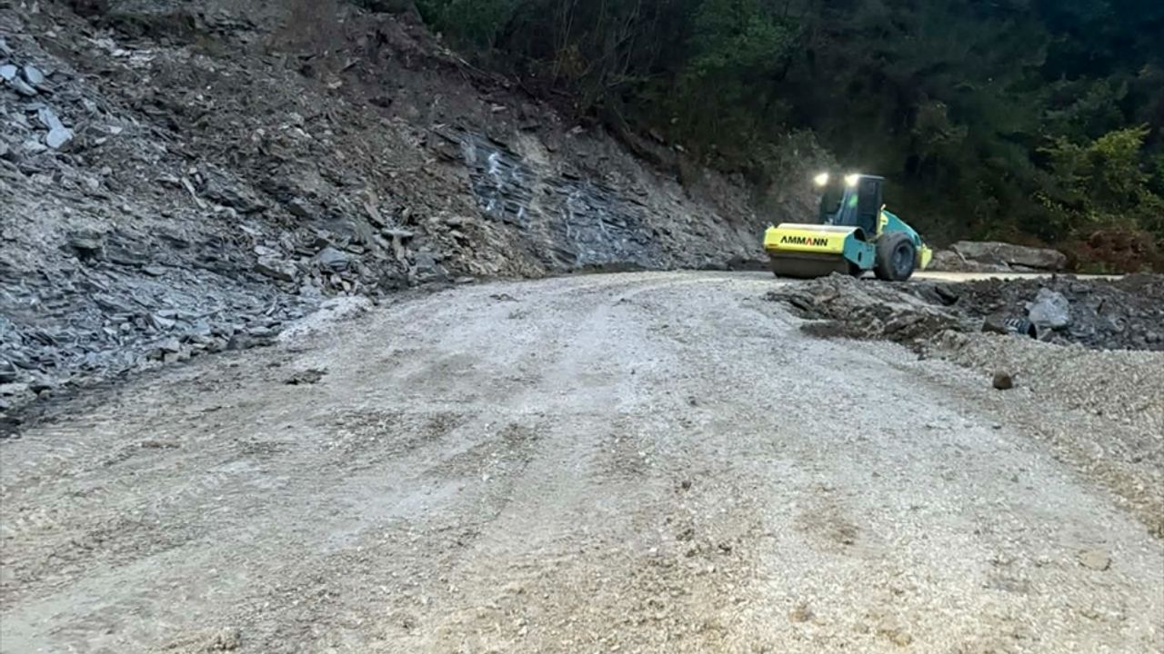 Cide-İnebolu kara yolunun 50'nci kilometresinde meydana gelen heyelanın ardından Karayolları ekipleri yoğun çalışma yürüttü.
