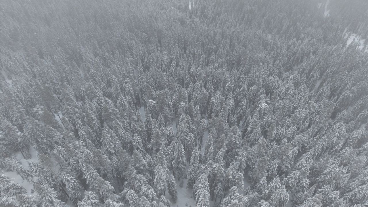 Karla kaplanan ormanlık alanlar dronla görüntülendi.