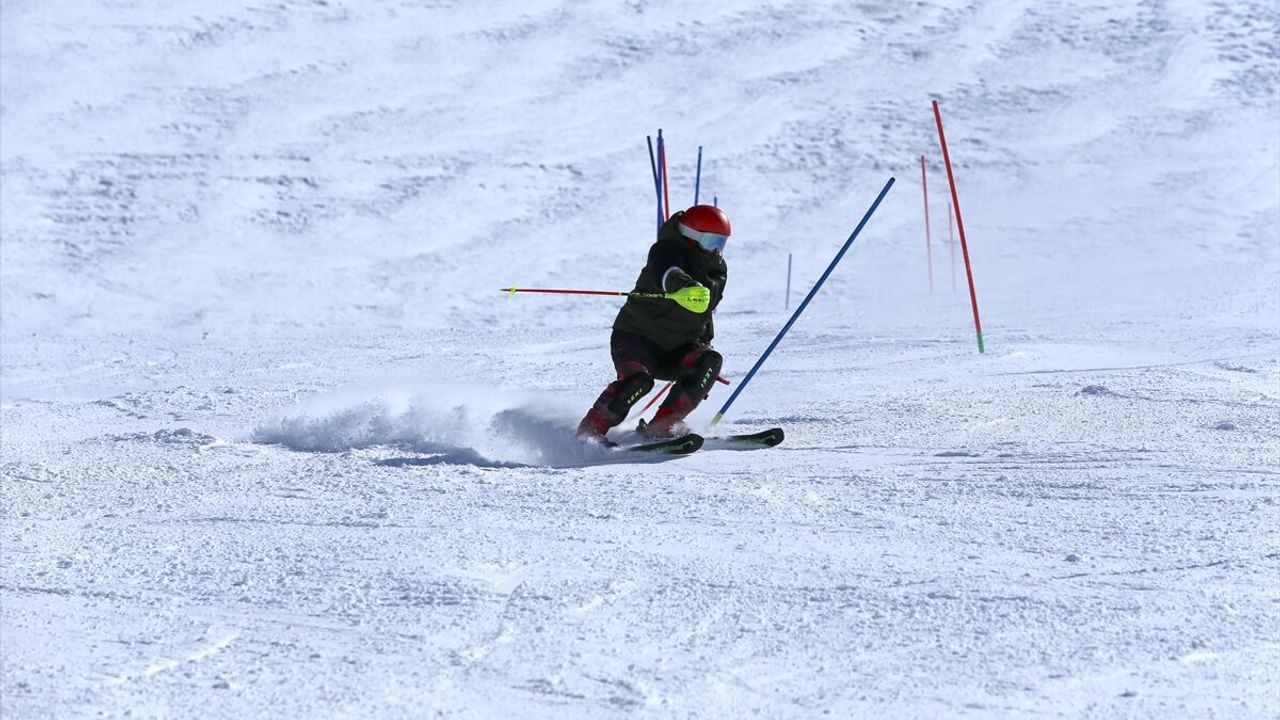Palandöken Kayak Merkezi'ndeki özel pistte kayak antrenörleri Osman Darel ve kardeşi Elkamer Darel eşliğinde kar, fırtına ve tipi demeden haftanın 7 günü kayak yapan ikizler, günde 6 saat çalışıyor.