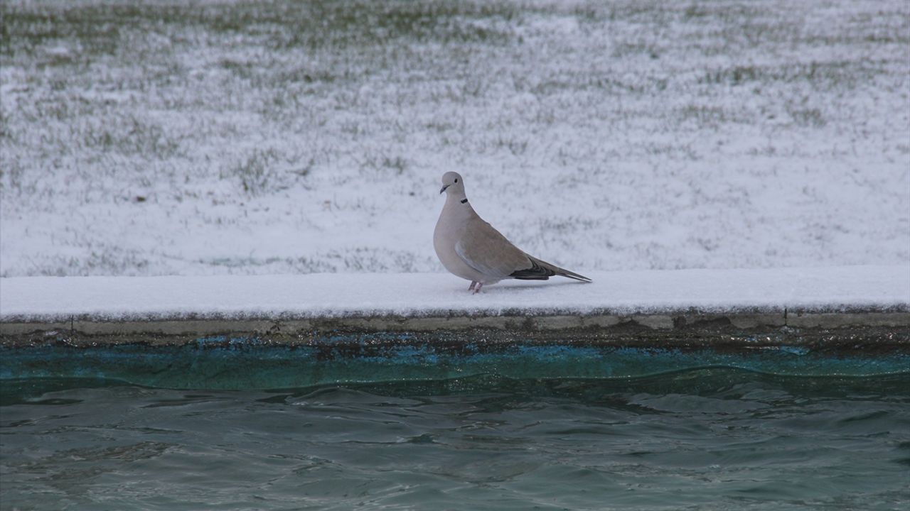 Vatandaşlar sabah iş yerlerinin önünde biriken karları temizlerken, bazıları da güvercinleri besledi.