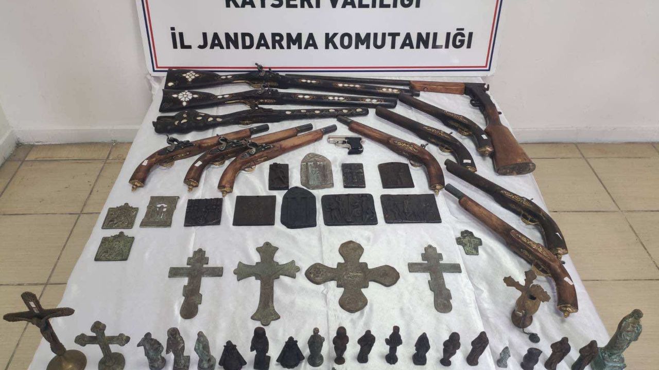 KAYSERİ (AA) - Kayseri'de kaçakçılık operasyonunda tarihi eser niteliği taşıdığı değerlendirilen 50 obje, 12 tabanca ve tüfek ile 18 sikke ele geçirildi.