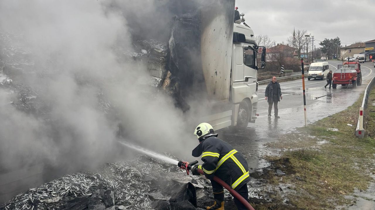KIRKLARELİ (AA) - Kırklareli'nin Pınarhisar ilçesinde seyir halindeyken alev alan hamsi yüklü tırda maddi hasar oluştu.