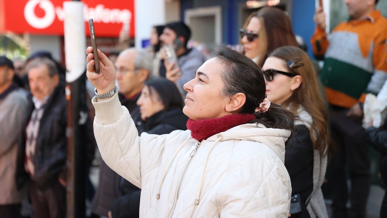 Gösteriyi ilgiyle izleyen vatandaşlar, cep telefonlarıyla ekibi görüntüledi.