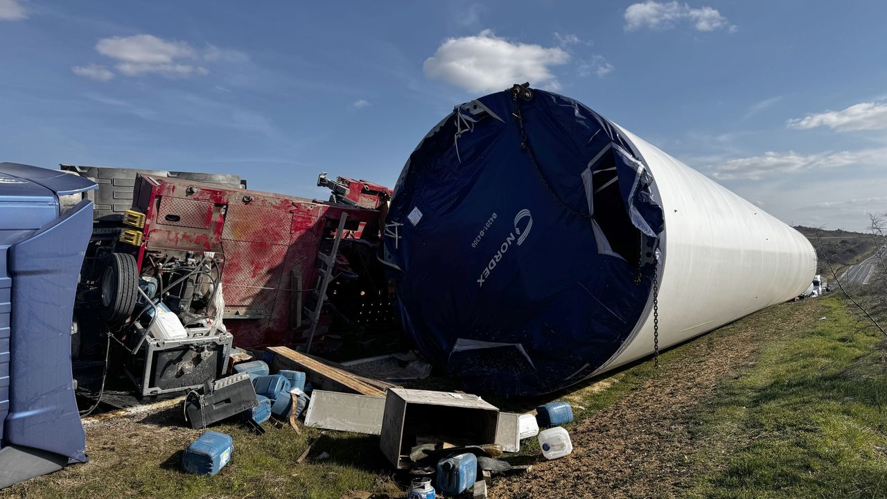 İ.A. idaresindeki 33 AKL 193 plakalı rüzgar türbini gövdesini taşıyan tır, Kırklareli Üniversitesi Kayalı Kampüsü mevkisinde devrildi.