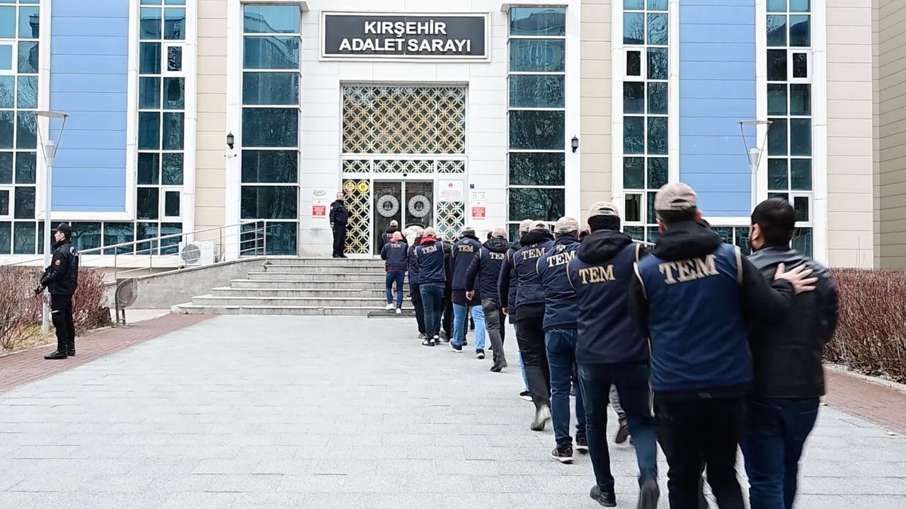 Emniyetteki işlemlerinin ardından Kırşehir Adliyesi'ne sevk edilen zanlılardan B.I.Y.K, E.A.M.A, N.R.Y.Y, O.A.A.S, S.A.A.A, J.J.M.A, S.A.Y.K, A.K.S.H, Y.M.Y.K, A.A.B.H, A.A.A.T. ve O.A.K.K. tutuklandı, H.A.M.A. ise adli kontrol şartıyla serbest bırakıldı.