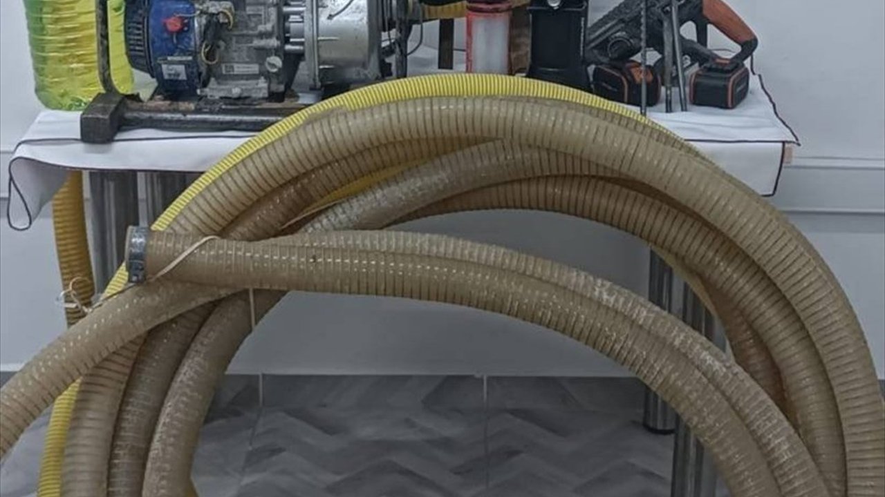 Kazıda kullanılan dalgıç motor, elektrikli delici, 45 metre uzunluğunda su tahliye borusu, 4 litre benzin, kazma, kürek, keser ve kırıcı ekipmanlarına el konuldu.