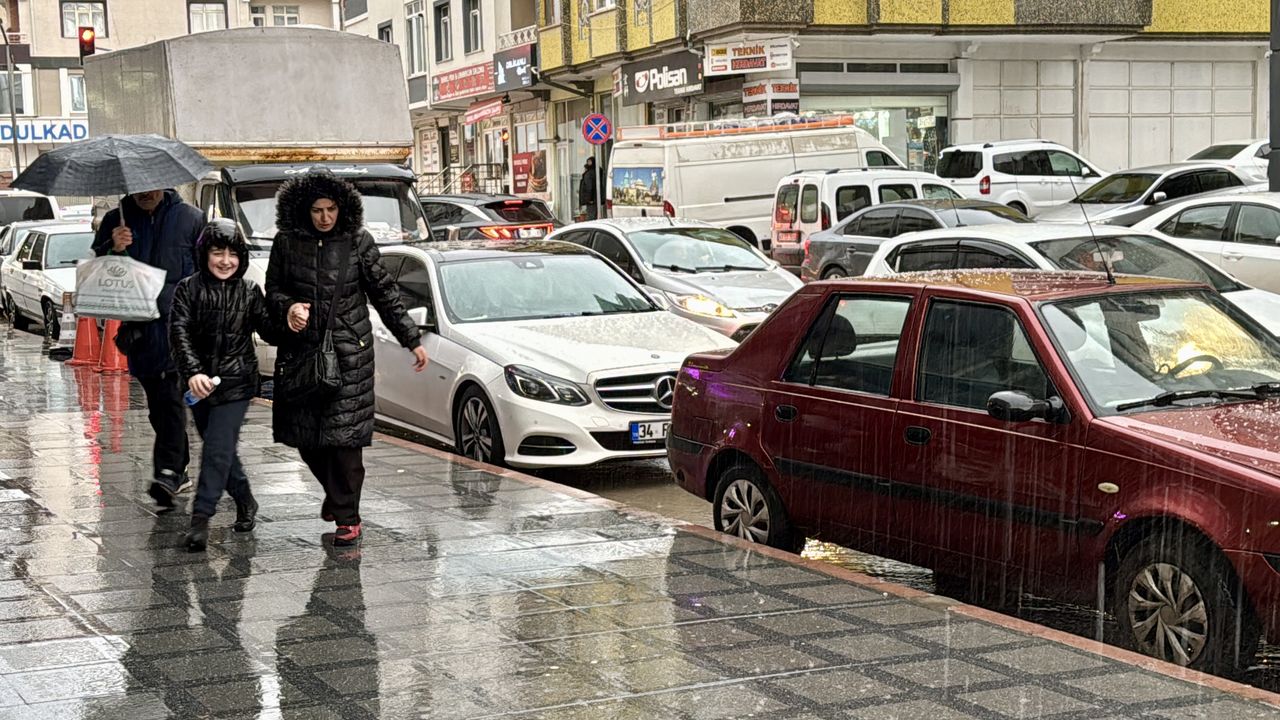 Kent merkezinde ikindi vakti etkili olan sağanak ve dolu yağışının ardından cadde ve sokaklarda su birikintileri oluştu.