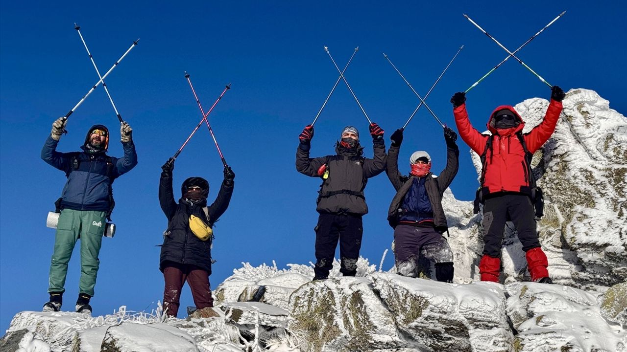 KIRŞEHİR (AA) - Kırşehir'deki dağcılar, 2026 yılının ilk gününde karla kaplı Gönül Dağı'na tırmanarak yeni yıl coşkusunu yaşadı.