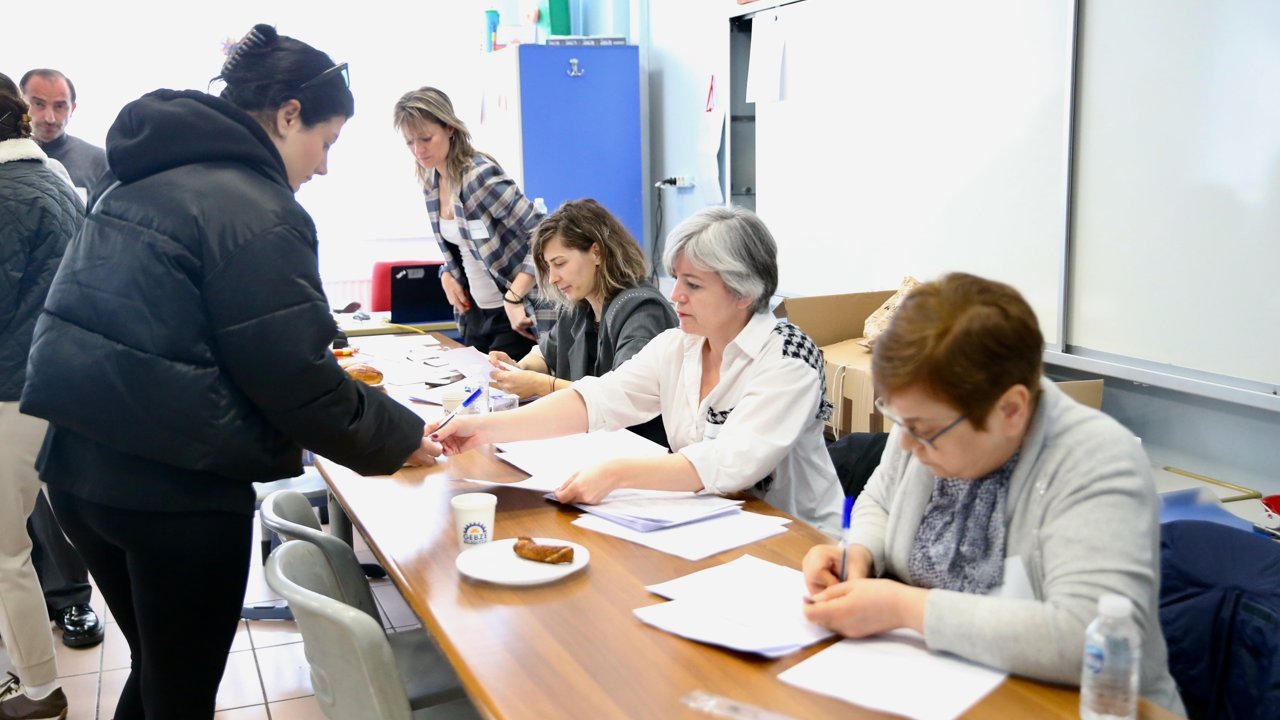 Seçmenlerin yoğun katılımıyla gerçekleşen oy verme işlemi sırasında kuyruklar oluşurken Kocaeli Balkan Türkleri ve Dayanışma Derneği yetkilileri, seçmenlere işlemlerinde yardımcı oldu.