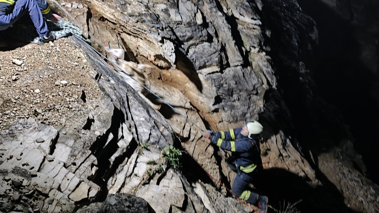 Ekiplerin uzun süren çalışmaları sonucu ip yardımıyla kurtarılan 15 keçi ve oğlak sahibine teslim edildi.