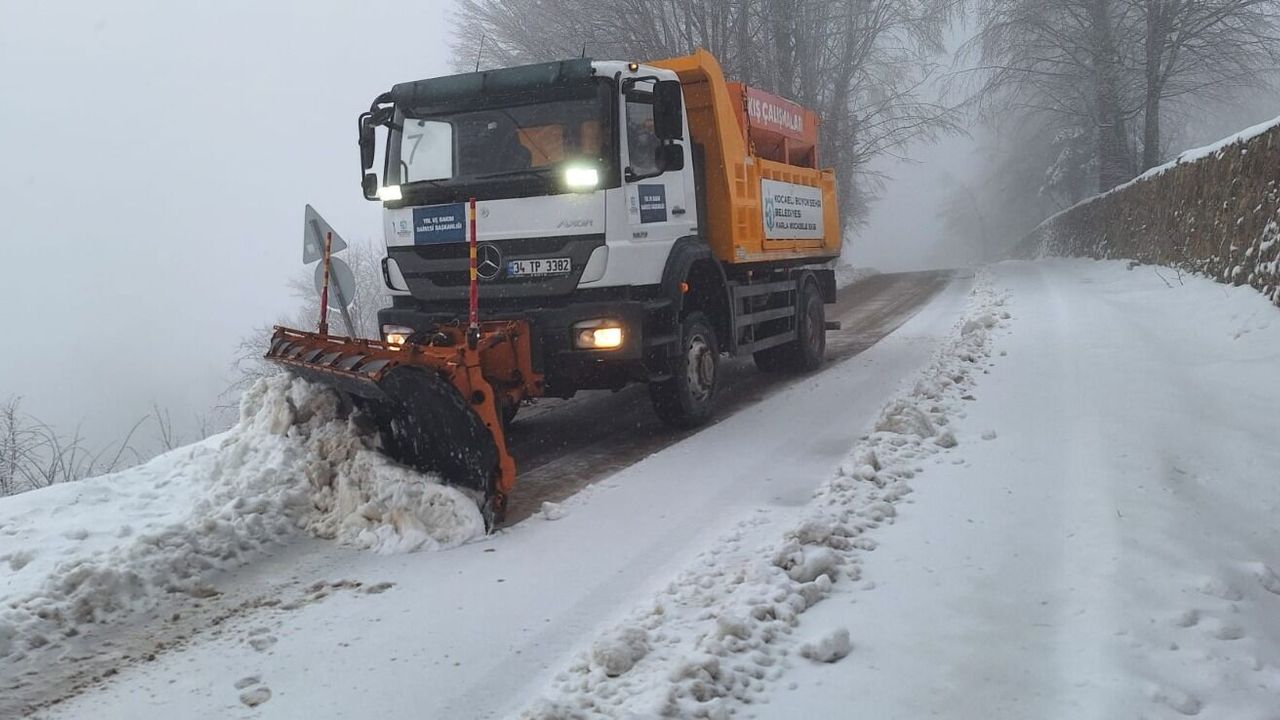 Kocaeli Büyükşehir Belediyesi ve Kartepe Belediyesi ekipleri de yolların ulaşıma kapanmaması için kar küreme ve tuzlama çalışması yürüttü.