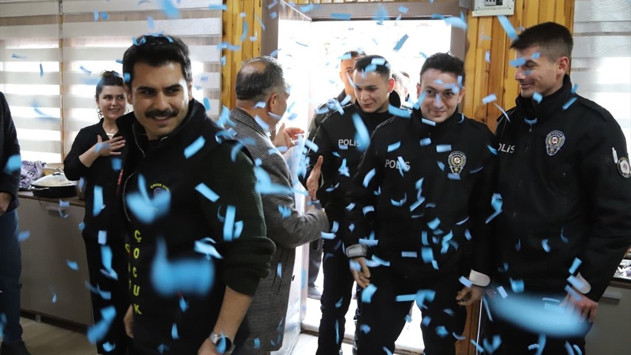 Hazırlanan sürpriz karşısında duygu dolu anlar yaşayan emniyet mensupları, kendileri için hazırlanan pastayı çocuklarla birlikte keserek tebrikleri kabul etti.