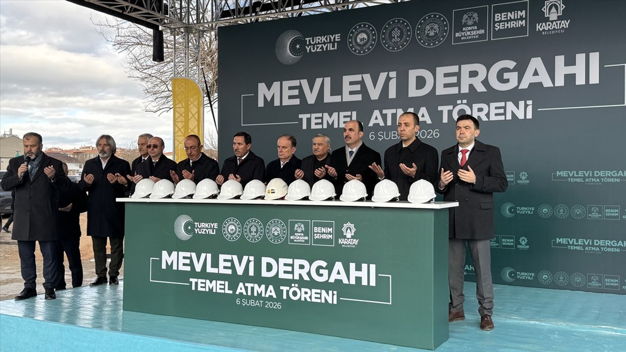 KONYA (AA) - Konya Büyükşehir Belediyesi ile Karatay Belediyesi tarafından yürütülen 'Mevlana Türbesi Arkası Kentsel Yenileme Projesi' kapsamında inşa edilen Mevlevi Dergahı'nın temel atma töreni gerçekleştirildi.