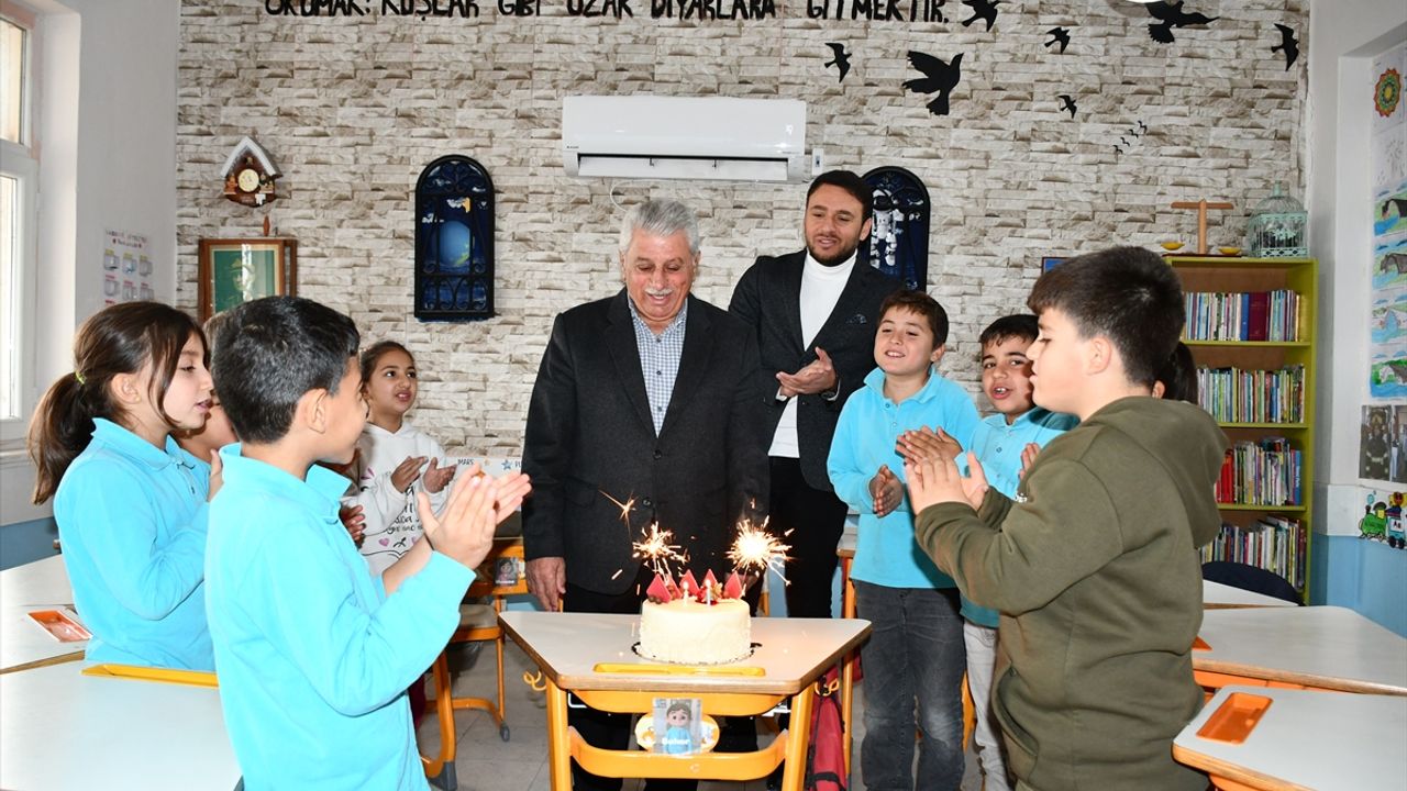 Köyde 22 yıldır muhtarlık yapan 68 yaşındaki Yusuf Ekinci de öğrencilerin hazırladığı sürprizle hayatında ilk kez doğum günü kutlamanın mutluluğunu yaşadı.