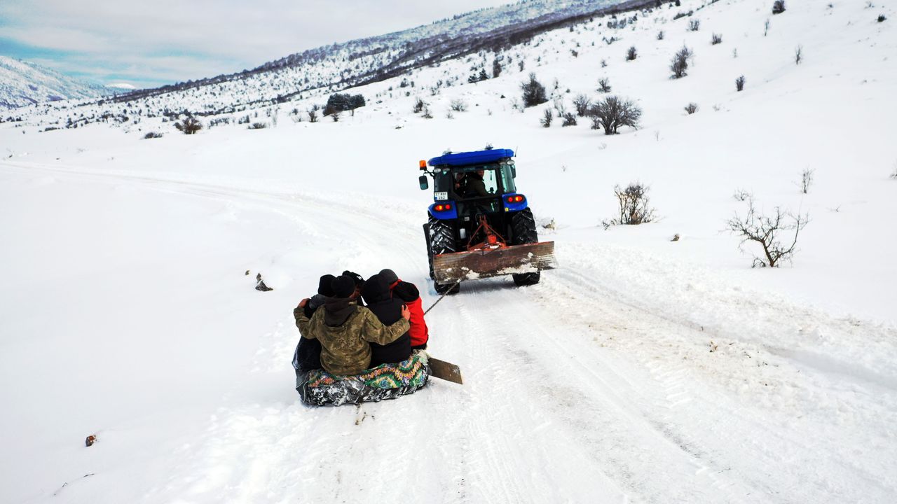Emre Yaldız ise köyde çiftçilikle uğraştıklarına işaret ederek, 'Köyde kahvehane yok, yapacak etkinlik yok. Köyde genç nüfus da çok. Biz de kızaklarla kayıyoruz. Traktöre bağlıyoruz, önüne tahtadan bir aparat yaptık, yolda kar olduğunda yolu da açsın diye. Sonra küçük kızaklar yaptık, onlarla da kayıyoruz. Bu şekilde köyde vakit geçiriyoruz.' ifadelerini kullandı.