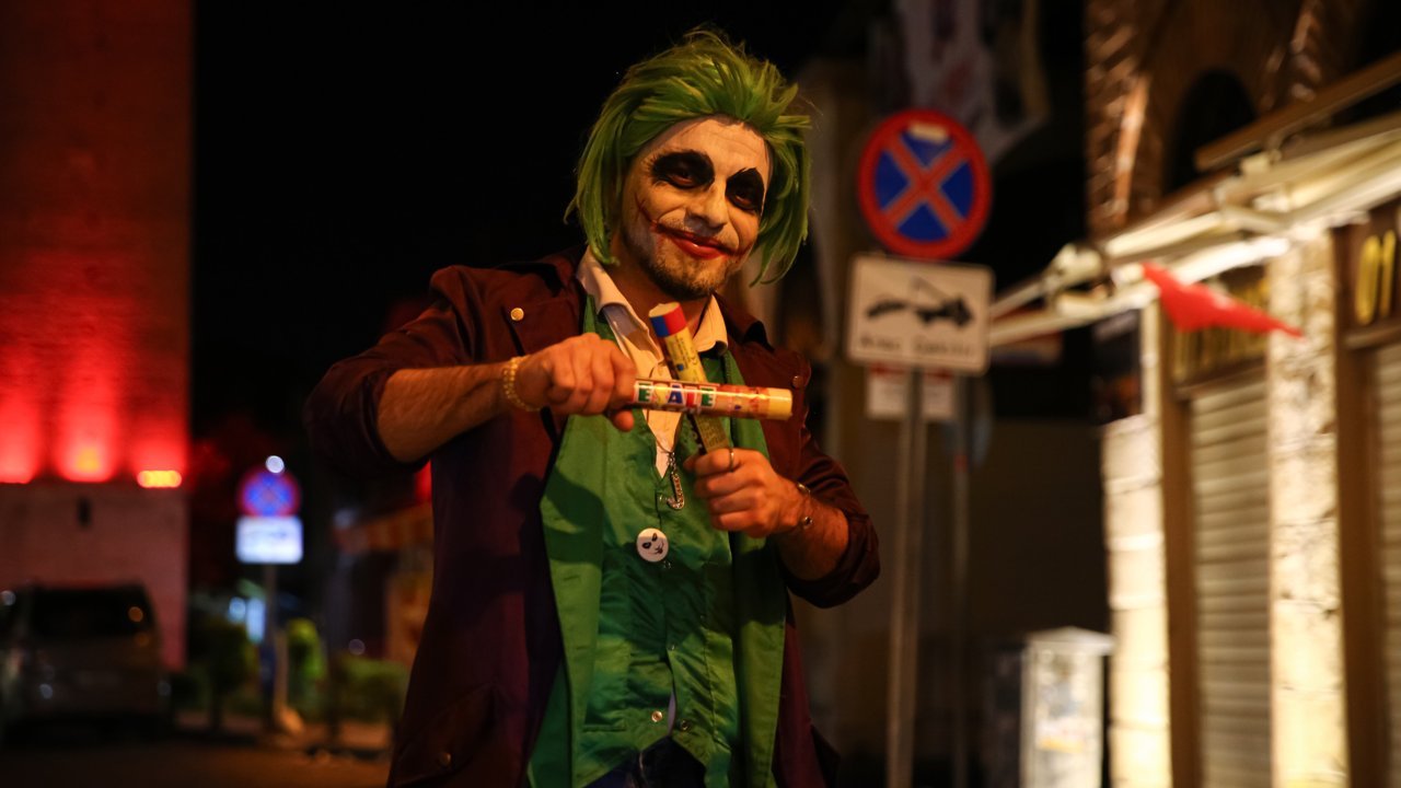 ADANA (AA) - YAKUP SAĞLAM - Adana'da yaptığı makyaj ve giydiği kostümle ABD merkezli çizgi roman yayıncısı DC Comics'in kurgusal karakteri 'Joker'i canlandıran animatör Eren Doğan, etkinlikler ve sokaklarda performans sergiliyor.