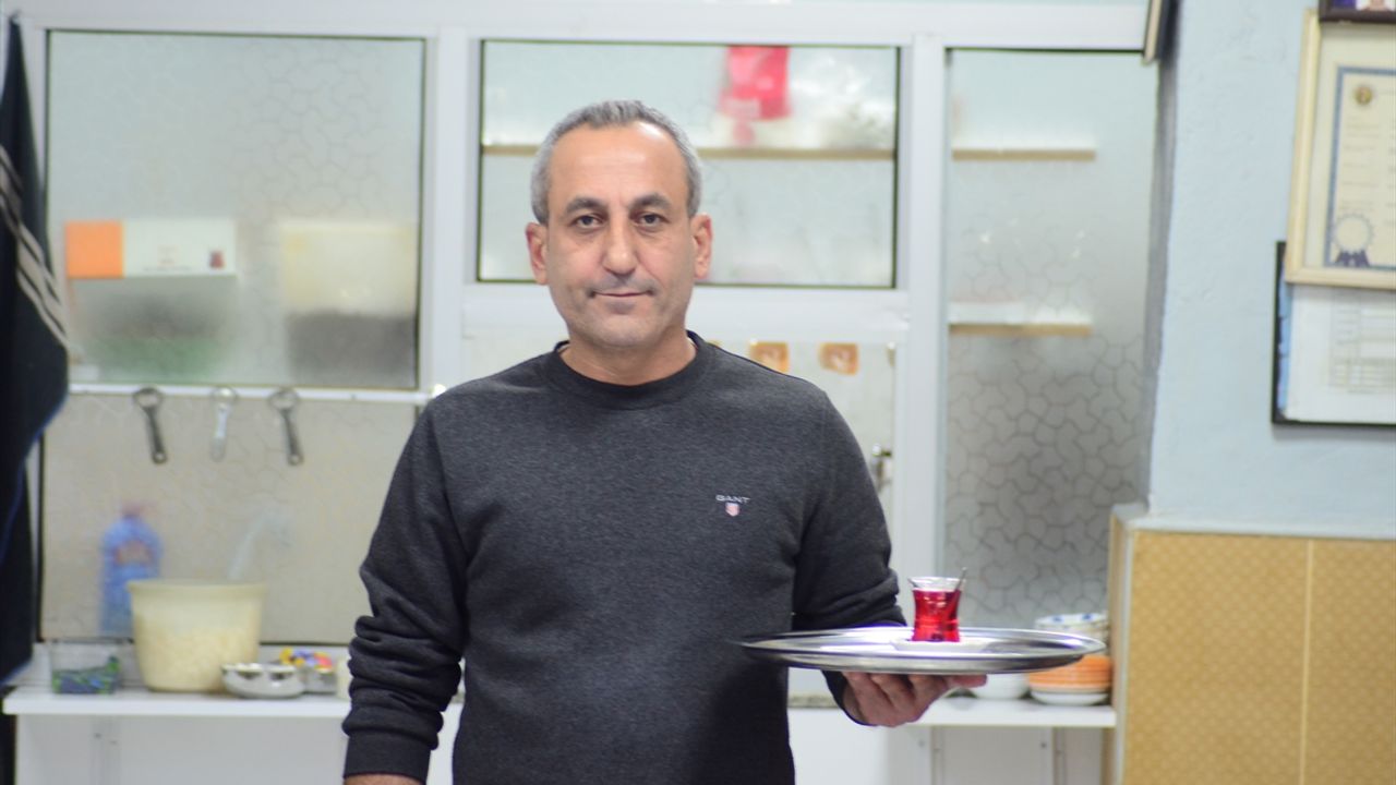 İlçe merkezinde çay ocağı işleten 47 yaşındaki Demirkol'un iş yerine girenleri onlarca kupa karşılıyor.
