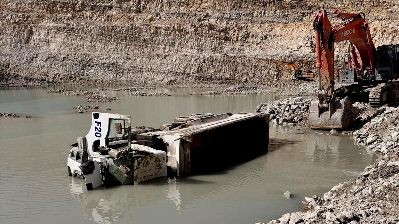 KÜTAHYA (AA) - Kütahya'nın Hisarcık ilçesinde, bor madeni sahasında su birikintisine devrilen kamyonun sürücüsü hayatını kaybetti.