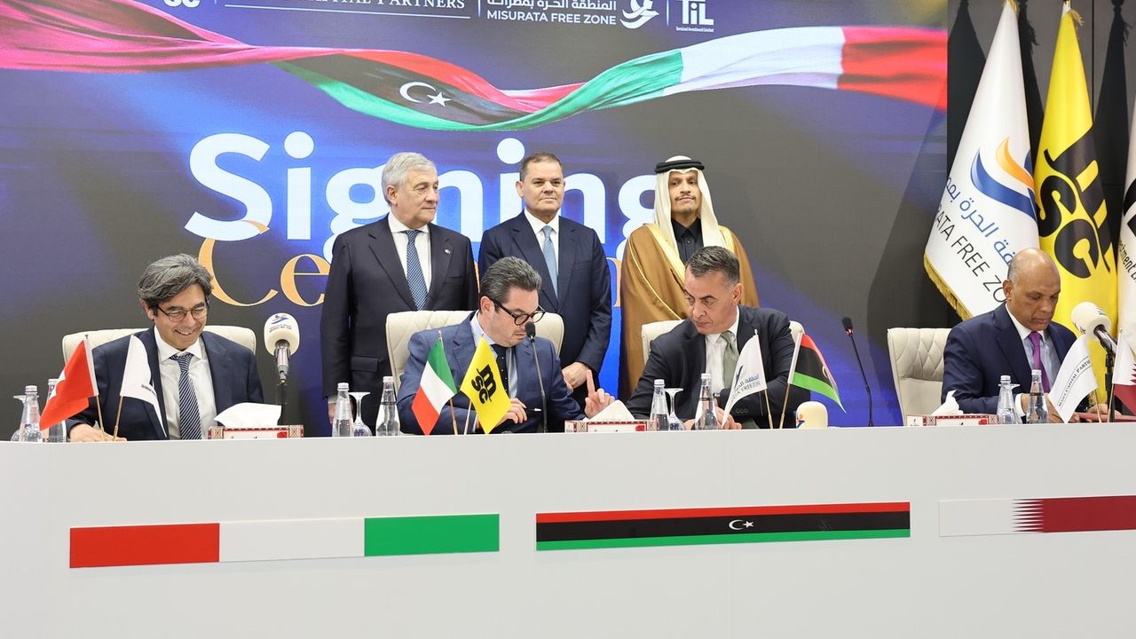 Misrata Limanı'nda düzenlenen imza törenine, Libya Başbakanı Abdulhamid Dibeybe, Katar Başbakanı ve Dışişleri Bakanı Şeyh Muhammed bin Abdurrahman Al Sani ile İtalya Başbakan Yardımcısı ve Dışişleri Bakanı Antonio Tajani katıldı.
