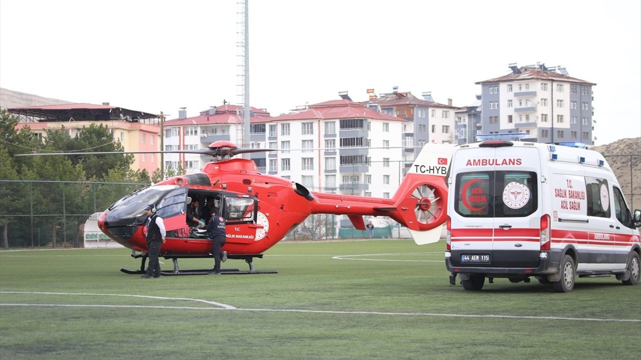 Kalp masajıyla yeniden solunumu sağlanan H.G, durumunun kritik olması ve ileri tetkikle tedavi gereksinimi bulunması üzerine ambulans helikopterle Malatya Eğitim ve Araştırma Hastanesi'ne sevk edildi.