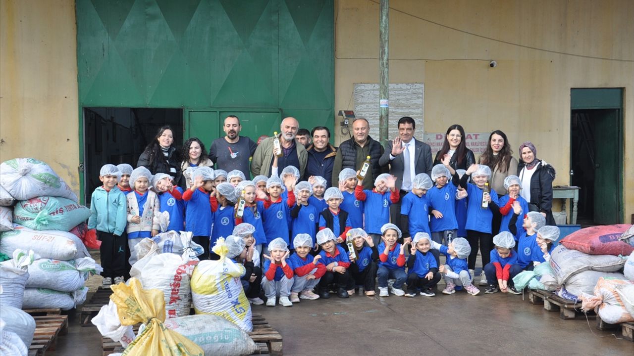 MANİSA (AA) - Manisa'nın Salihli ilçesinde anasınıfı öğrencileri, okulun bahçesindeki zeytinlerin toplanmasına yardım edip zeytinyağı sıkımına şahitlik etti.