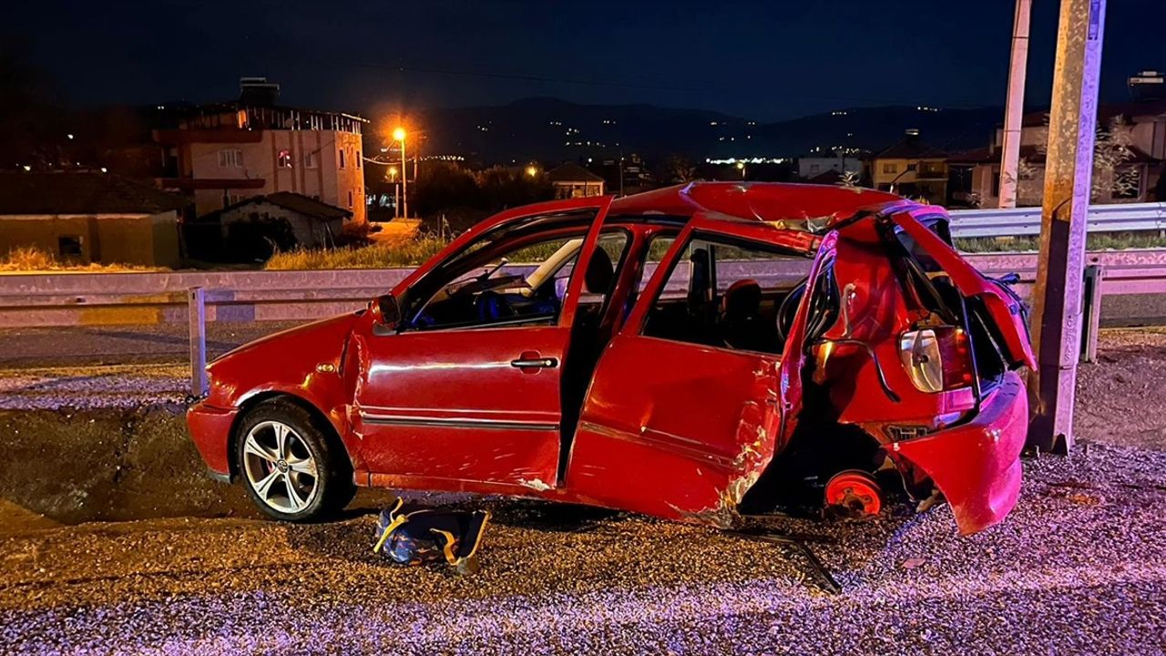 MANİSA (AA) - Manisa'nın Sarıgöl ilçesinde otomobilin elektrik direği ile bariyerlere çarpması sonucu sürücü ağır yaralandı, eşi ve 5 yaşındaki oğlu hayatını kaybetti.