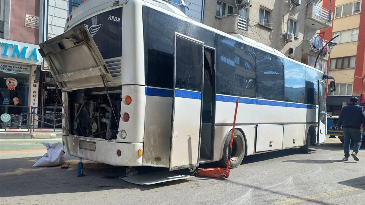 Alınan bilgiye göre, Topçu Asım Mahallesi İzmir Caddesi'nde işçi taşıyan otobüs, motor kısmındaki arıza nedeniyle durdu.