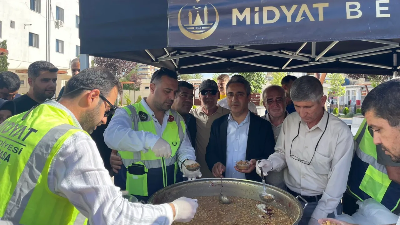 Mardin’in Midyat ilçesinde, Muharrem ayı dolayısıyla vatandaşlara aşure ikramında bulunuldu.MARDİN (İGFA) - Midyat Belediyesi tarafından düzenlenen etkinlik kapsamında, Recep Tayyip Erdoğan Parkı, Kuyumcular Çarşısı ve Millet Bahçesi önünde kurulan stantlarda vatandaşlara aşure dağıtıldı.