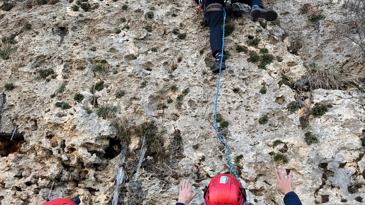 Ekipler, keçiyi halat yardımıyla kurtararak sahibine teslim etti.