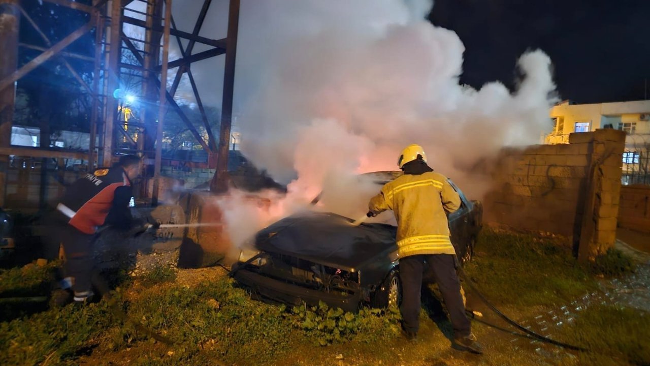 Yeşilkent Mahallesi Alman Köprüsü mevkisinde plakası öğrenilemeyen otomobil henüz bilinmeyen bir nedenle park halindeyken alev aldı.